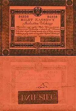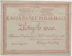 - ↑ Czesław Miłczak, Banknoty polskie i wzory, wyd. Pierwsze, t. I, 1794–1941, Warszawa: Antykwariat Numizmatyczny Paweł Niemczyk, 2012, s. 87, 90, 94, 96, ISBN 978-83-913361-3-7.
