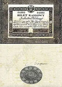 - ↑ Lech Kokociński, Pieniądz papierowy na ziemiach polskich, wyd. pierwsze, Warszawa: ROSIKON PRESS, 1996, s. 34–36, ISBN 83-903459-5-1.