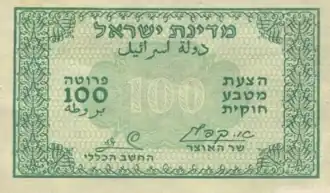 - ↑ Kneset, Bank Notes Ordinance. No. 18 of 5708—1948, „Laws of the State of Israel”, 17 sierpnia 1948 [dostęp 2021-09-21].