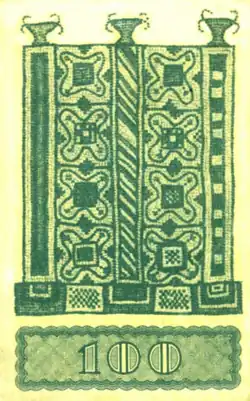 Wycofanie: 22 lutego 1980[6][8] Seria: b.d. Numeracja: czerwona Awers: nazwa państwa i nominał w językach hebrajskim i arabskim, gilosz nawiązujący do mozaiki synagogi w Bet Alfa Rewers: nominał, gilosz nawiązujący do mozaiki synagogi w Bet Alfa Kolor: zieleń Znak wodny: b.d. Papier: b.d. Wymiary: 50 × 80 mm[1]/48 × 80 mm[6] Nakład: b.d. Projektant: Ote Walisz[8] Podpisy: Minister Finansów – Eli’ezer Kaplan Drukarnia: Lewin-Epstein Printing House (Tel Awiw) |