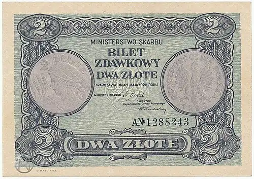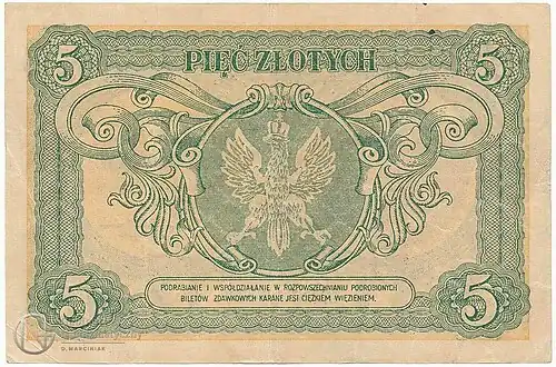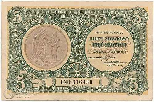 - ↑ Czesław Miłczak, Banknoty polskie i wzory, wyd. Pierwsze, t. I, 1794–1941, Warszawa: Antykwariat Numizmatyczny Paweł Niemczyk, 2012, s. 310,366,368, ISBN 978-83-913361-3-7.