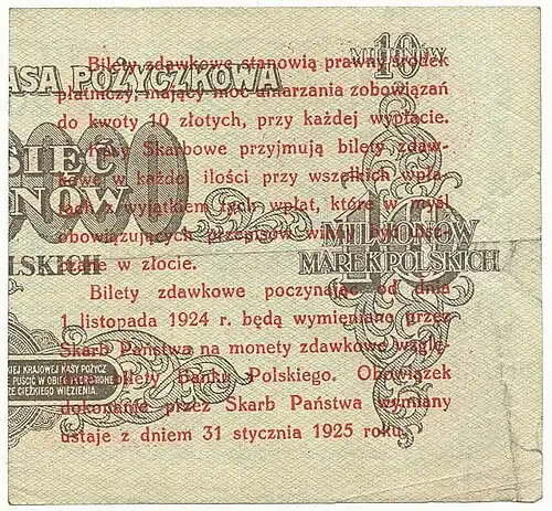 Na prawej części banknotu 10 000 000 marek polskich | |