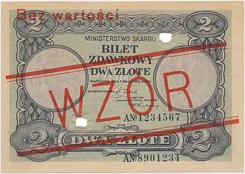 Mimo tak długiego okresu przejściowego brak w obiegu monet złotowych był nadal odczuwalny. W związku z tym sejm upoważnił Ministerstwo Skarbu do nowej emisji biletów zdawkowych, z datą 1 maja 1925 r., zastępujących monety dwu- i pięciozłotowe. Bilety te, zgodnie z przyjętym wcześniej standardem, miały wydrukowane wizerunki awersu i rewersu zastępowanych monet obiegowych. Wprowadzono je do obiegu 30 maja i 1 lipca 1925, odpowiednio[3].