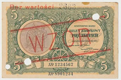 Znane są liczne fałszerstwa biletów zdawkowych: 2 złote, oraz 5 złotych 1925[10], rzadziej 50 groszy 1923.