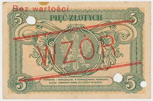 Bilety zdawkowe wydrukowane jako banknoty Banku Polskiego 1919