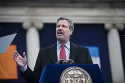 W wyborach na stanowisko burmistrza Nowego Jorku w 2013 r. de Blasio uzyskał ponad 70% poparcia.
