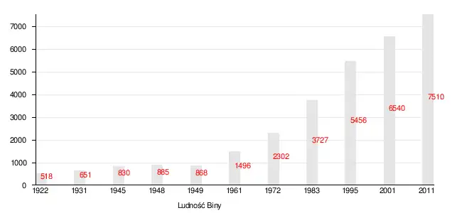 Zgodnie z danymi Izraelskiego Centrum Danych Statystycznych w 2011 roku w Bina żyło ponad 7,5 tys. mieszkańców, z czego 92,3% Arabowie muzułmanie i 7,7% Arabowie chrześcijanie. Wskaźnik wzrostu populacji w 2011 roku wynosił 5,6%. Zgodnie z danymi Izraelskiego Centrum Danych Statystycznych średnie wynagrodzenie pracowników w Bina w 2009 roku wynosiło 3724 ILS (średnia krajowa 7070 ILS)[1][2].