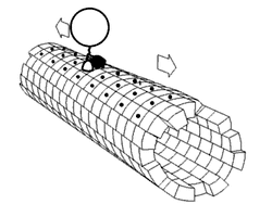 Kinezyna "krocząca" po mikrotubuli, przykład molekularnej maszyny biologicznej wykorzystującej dynamikę białek w nanoskali. - Analiza polimorfizmu typu SNP,