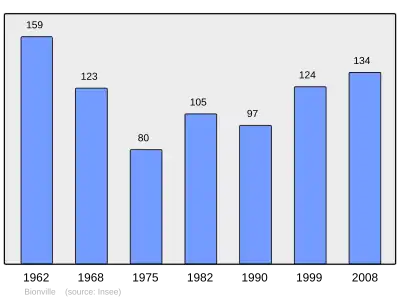 Według danych na rok 1990 gminę zamieszkiwało 97 osób, a gęstość zaludnienia wynosiła 8 osób/km² (wśród 2335 gmin Lotaryngii Bionville plasuje się na 948. miejscu pod względem liczby ludności, natomiast pod względem powierzchni na miejscu 471.).