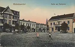 W 1945 Biskupiec doznał ciężkich zniszczeń (60%) podczas zajmowania przez wojska radzieckie[5]. Miasto zostało przekazane Polsce, jego ludność wysiedlona do Niemiec i zastąpiona polskimi przesiedleńcami[5].