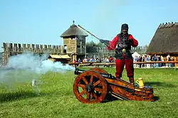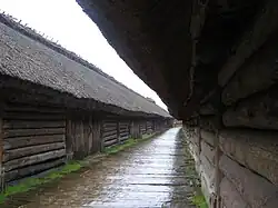 ![]() Widok rekonstrukcji osady od strony jeziora | |