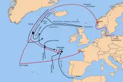 Niemiecki zespół po opuszczeniu fiordów Bergen skierował się na północ, w kierunku wyspy Jan Mayen. 22 maja rano odesłano trzy niszczyciele eskorty do Trondheim, po czym „Bismarck” i „Prinz Eugen” kontynuowały rejs samodzielnie. Admirał Lütjens, korzystając z pogorszenia pogody, obrał kurs na zachód, chcąc jak najszybciej przedrzeć się na Atlantyk przez Cieśninę Duńską między Islandią a Grenlandią[8].