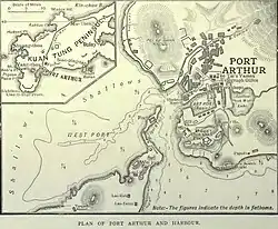 Port Artur (ang. Port Arthur) położony na półwyspie Liaotung w Chinach od 1898 roku był główną bazą morską rosyjskiej floty wojennej Oceanu Spokojnego, wydzierżawioną formalnie od Chin na 25 lat[1]. Sam port znajdował się w płytkiej zatoce (wewnętrznej redzie), oddzielonej od Morza Żółtego Półwyspem Ogon Tygrysi, z jedynie wąskim (300 m) i płytkim 900-metrowym kanałem łączącym dość ciasną redę wewnętrzną z otwartym morzem[2]. Duże okręty mogły przepływać kanałem tylko dwa razy na dobę w porze przypływu, z pomocą holowników[2]. Przestronna reda zewnętrzna przed kanałem wyjściowym była natomiast odkryta i niechroniona od strony morza[2]. Rosja przystąpiła w 1901 roku również do fortyfikowania bazy, w szczególności tworzenia baterii nadbrzeżnych i umocnień od strony lądu, lecz prace te jedynie częściowo zostały ukończone do 1904 roku[3].