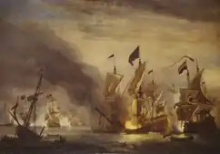 W nocy z 23 na 24 marca flota Chodkiewicza niespodziewanie zaatakowała flotę szwedzką. Prawdopodobnie hetmanowi udało się też przekupić niektórych członków załóg szwedzkich[1]. Wynajęci Inflantczycy, wykorzystując korzystny wiatr wiejący w kierunku lądu, wprowadzili do portu kilka branderów (najprawdopodobniej cztery i było to pierwsze użycie branderów na Bałtyku w czasach nowożytnych[3]), podpalili je i pchnęli w stronę stojących w szyku zakotwiczonych okrętów szwedzkich.