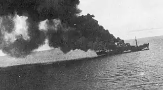 ![]() Bombowiec amerykański A-20 atakuje z niskiego pułapu statek japoński transportujący żołnierzy do Lae | |||