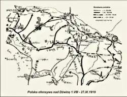 Latem 1919 Wojsko Polskie realizowało szeroko zakrojoną operację zaczepną, której celem było opanowanie Mińska, Borysowa, Bobrujska i oparcie frontu o linię rzek Dźwiny i Berezyny[2][3][4][5]. W jej wyniku na północy oddziały polskie na przełomie sierpnia i września dotarły do Dźwiny. Przeciwnik utrzymał jednak silne przedmościa pod Dyneburgiem, Krasławiem i Dryssą[6].