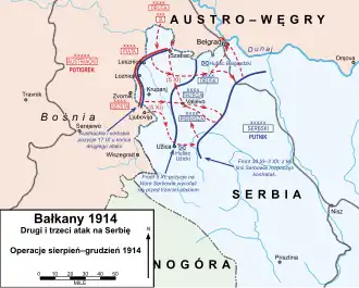 ![]() Oddziały serbskie przekraczają Kolubarę | |||