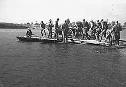 ![]() Budowa tratw do przeprawy przez Dniepr. Napis na tablicy w języku rosyjskim: „Na Kijów!” | |||