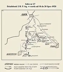 Zorganizowała ona obronę miasta, obsadziła też przedmoście na wschodnim brzegu Styru[17]. 13 lipca 18 Dywizja Piechoty gen. Franciszka Krajowskiego zdobyła Dubno, a dowódca frontu gen. Rydz-Śmigły postanowił wykorzystać sukces i rozbić część 1 Armii Konnej. Z uwagi na konieczność przegrupowania, stacjonującą w Łucku 6 Dywizję Piechoty zluzował 157 pułk piechoty[18]. Spóźnione polskie natarcie zakończyło się niepowodzeniem, gdyż 6 DP nie mogła przełamać twardego oporu 14 Dywizji Kawalerii i 17 lipca ze stratami wróciła do Łucka[19][20].