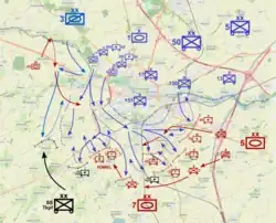Manewr 3 Lekkiej Dywizji Zmechanizowanej w celu zasłonięcia prawej flanki sił brytyjskich również był słabo przygotowany, z niewystarczającymi środkami łączności, a Francuzom nie powiedziano o czasie i kierunku brytyjskiego ataku. W zamieszaniu doszło do wymiany ognia pomiędzy francuskimi czołgami Somua, a brytyjskimi działami przeciwpancernymi pod miejscowością Warlus. Od bratobójczego ognia zostało zniszczone jedno działo przeciwpancerne, brytyjska załoga zginęła, a kilka francuskich czołgów otrzymało trafienia, zanim sojusznicy zorientowali się, że walczą przeciwko sobie. Wieczorem siły francuskie, z około sześcioma czołgami Somua, przystąpiły do walki z niemieckim 25 Pułkiem Pancernym na południe od Duisans. Brytyjskie wojska rozpoczęły odwrót i zanim niemieckie czołgi przedarły się przez obronę Francuzów, Brytyjczycy uciekli[20].