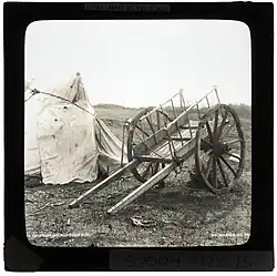 - ↑ Prawdopodobnie okolice Dogden Butte, pobliże Prophet's Mountain, dwadzieścia do trzydziestu mil na północny zachód od Dogden Butte lub terytorium na zachód od źródeł rzeki Sheyenne. Patrz: Haag i Barkwell 2009 ↓, s. 1–2; Smith i Beaudry 2009 ↓, s. 2; Morton 1959/1960 ↓ i McCrady 2009 ↓, s. 12.
