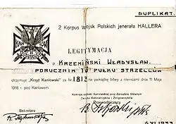 - ↑ Andrzej Hlawaty: DZIEJE 6 PUŁKU UŁANÓW KANIOWSKICH. Londyn: Przegląd Kawalerii i Broni Pancernej, 1973, s. 22.
