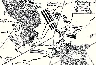 Takie rozmieszczenie sił Francuzów i brak słabych punktów w ich froncie sprawiły, że wbrew swym dotychczasowym zasadom taktycznym ks. Marlborough zmuszony został do zwarcia czołowego w postaci frontalnego natarcia na umocnienia francuskie[3]. Natomiast Eugeniusz Sabaudzki po rozpoznaniu nieprzyjacielskich pozycji zamierzał szukać rozstrzygnięcia batalii na lewym skrzydle Francuzów, kierując tam 2/3 piechoty, a jedynie wiążąc demonstracyjnym natarciem ich prawe skrzydło wraz z centrum. W ciągu kolejnych dni, gdy ściągnięto dalsze oddziały wojsk sprzymierzonych (9-11 września), rozmieszczono ich piechotę w 3 rzutach na skrzydłach i w centrum (przy czym 2 silne bataliony naprzeciw skrzydeł pierwszego rzutu francuskich pozycji), zaś w lukach i w odwodzie umieszczając kawalerię. Ks. Marlborough objął dowodzenie skrzydłem lewym i centrum, ks. Eugeniusz miał dowodzić prawym, manewrowym.