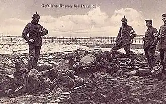 - ↑ Gen. Morgen będąc pod wrażeniem postawy żołnierzy rosyjskich ofiarował swoją szablę rannemu płk. Barybinowi, ten w dowód uznania dla armii niemieckiej podarunek przyjął „Militaria”. 385557, s. 50, 2007. Militaria XX wieku. ISSN 1732-4491.