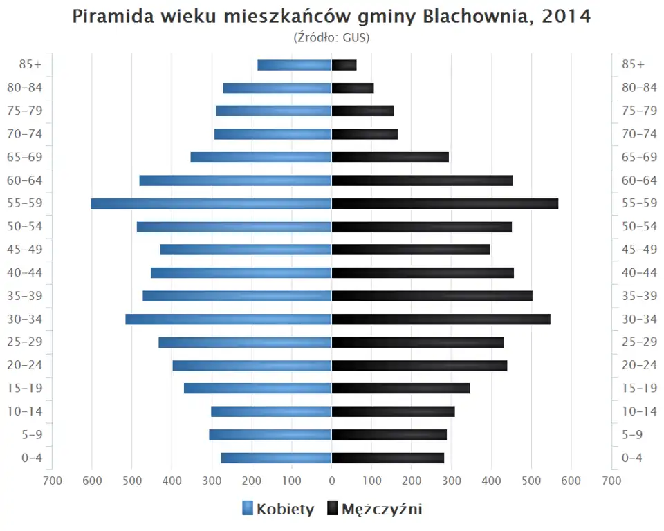- Piramida wieku mieszkańców gminy Blachownia w 2014 roku[1].