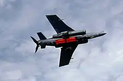 Całkowicie metalowy dwumiejscowy średniopłat konstrukcji półskorupowej, ze skrzydłami o skosie 40°-38°. Kadłub samolotu skonstruowany zgodnie z regułą pól. Silniki w gondolach po bokach kadłuba, u nasady skrzydeł, przechodzących w kadłub. Skrzydła składane do hangarowania do góry. Usterzenie w formie "T". Na końcu kadłuba hamulec aerodynamiczny w formie dwóch rozchylanych na boki połówek stożka końcowego. Kabina załogi z miejscami w układzie tandem i wspólną osłoną, odsuwaną do tyłu, ze stałym wiatrochronem, wyposażona w fotele wyrzucane Martin-Baker. Podwozie samolotu trójpodporowe, chowane; podwozie główne chowane do skrzydeł i gondol silnikowych; hak do lądowania pod częścią ogonową. Pojemność wewnętrznych zbiorników paliwa w kadłubie 7092 l, można było przenosić dwa zbiorniki podwieszane wyprofilowane do skrzydeł o pojemności po 1136 l oraz zbiornik w drzwiach komory bombowej o pojemności 2000 l. Samolot miał stałą sondę do pobierania paliwa w locie nad nosem.