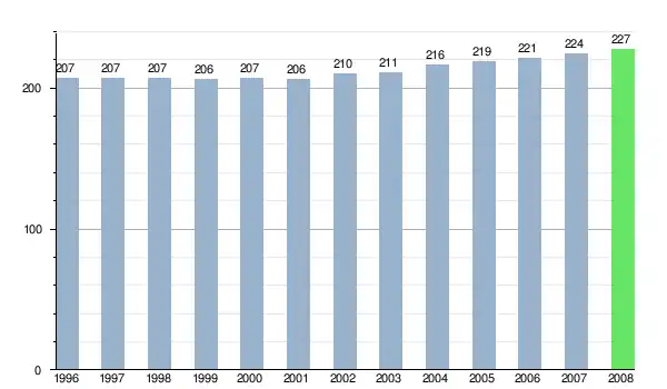 Według danych z dnia 31 grudnia 2012 roku, wieś zamieszkiwało 217 osób, w tym 118 kobiet i 99 mężczyzn[6].