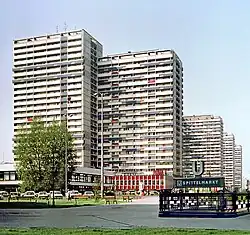 Po II wojnie światowej (1939–1945) nowatorskie koncepcje Le Corbusiera były realizowane również w krajach bloku wschodniego, w których socjalistyczna gospodarka planowa pozwalała na projektowanie i wznoszenie m.in. wielkich zespołów mieszkaniowych, co było kontynuacją modernistycznej twórczości architektonicznej i urbanistycznej, zapoczątkowanej w dwudziestoleciu międzywojennym (1918–1939)[6][7].