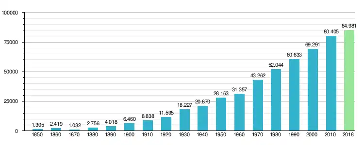Miasto liczy 69,3 tysięcy mieszkańców, a jego obszar metropolitalny 175,5 tysięcy (dane z 2000).