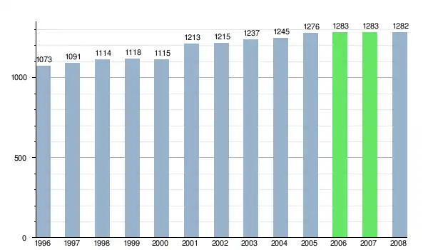 Według danych z dnia 31 grudnia 2012 roku, wieś zamieszkiwały 1254 osoby, w tym 619 kobiet i 635 mężczyzn[6].
