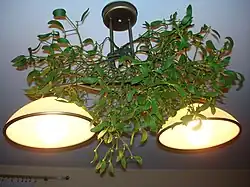 | Jemioła | Kwitnie w okresie przesilenia zimowego, dlatego uznaje się za symbol ponownych narodzin, życia duszy po śmierci ciała. Jemioła wieszana nad wigilijnym stołem miała przynieść dostatek i sprawić, że składane życzenia się spełnią. Z kolei wieszania nad drzwiami miała bronić przed złymi mocami i chorobami oraz sprowadzać do domu życzliwe osoby. Pod jemiołą już za dawnych lat można było się bezkarnie całować. Po każdym pocałunku mężczyzna powinien zerwać po jednym owocu, a po zerwaniu ostatniego miał otrzymać dar płodności. |