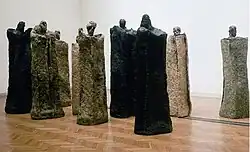 Cykl dziesięciu figur przyściennych o wysokości do 160 do 345 cm, dwóch rzeźb „destrukty” oraz rysunków; użyte materiały: konopie, len, pakuły, trociny zatapiane w żywicy, metal. Prace z rysunkiem stały się inspiracją dla stworzenia układu rzeźb związanych z symboliką ludzkiego życia, losu, nieuchronności śmierci. Artystka wprowadziła po raz pierwszy kolor: czerwień. Rzeźby znajdują się w kolekcji Państwowego Muzeum Oświęcim-Brzezinka w Pawilonie Żydowskim.