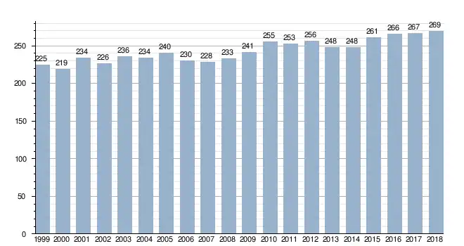 Liczba mieszkańców gminy Boadella i les Escaules w latach 1999–2018