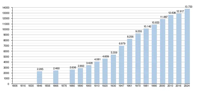 - Źródła:NIS, :od 1806 do 1981= według spisu; od 1990 liczba ludności w dniu 1 stycznia