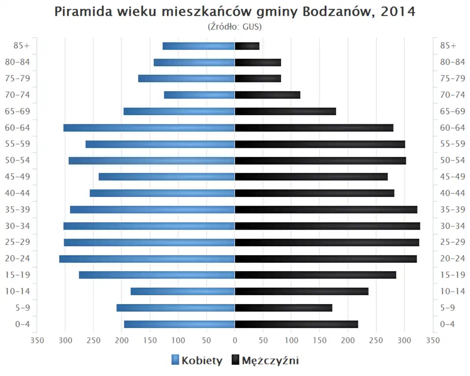 - Piramida wieku mieszkańców gminy Bodzanów w 2014 roku[1].