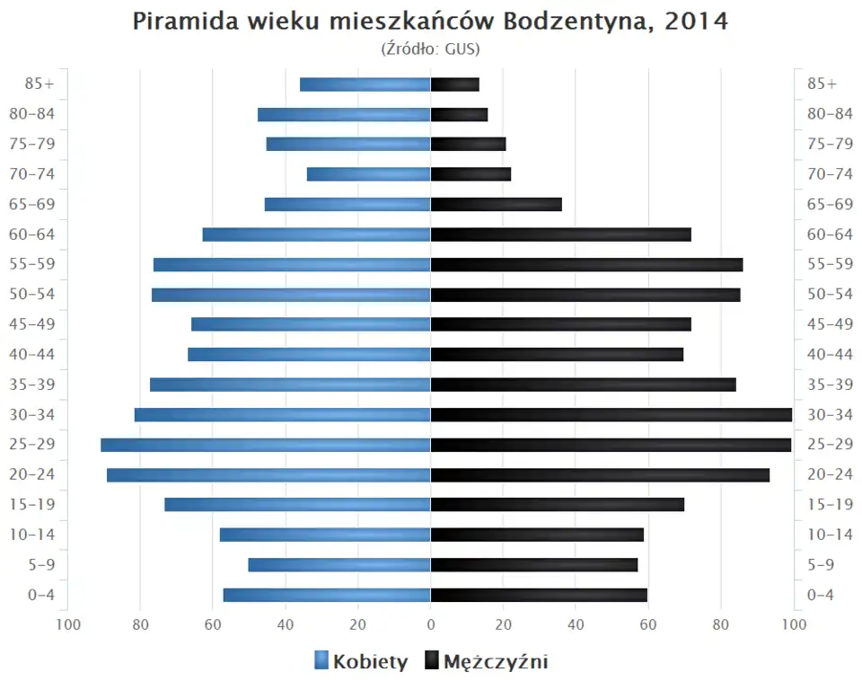 - Piramida wieku mieszkańców Bodzentyna w 2014 roku[1].