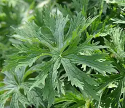 - Nerkowate, dłoniasto-dzielne, pocięte niemal do samej nasady. Składają się z 7 wąskich odcinków Liście odziomkowe długoogonkowe, w środkowej części łodygi krótkoogonkowe, u góry siedzące. Wszystkie liście gruczołowato owłosione[6].