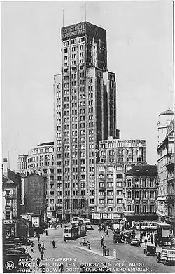- ↑ Antwerp Tower. [w:] Buildings [on-line]. emporis.com. [dostęp 2022-07-08]. (ang.).