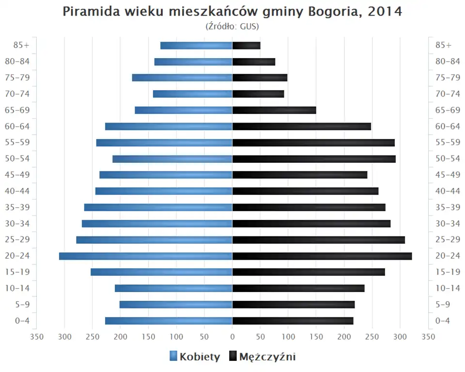 - Piramida wieku mieszkańców gminy Bogoria w 2014 roku[1].