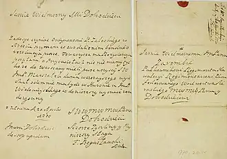 - ↑ J. Dunin-Borkowski i M. Dunin-Wąsowicz, Elektorowie królów Władysława IV., Michała Korybuta, Stanisława Leszczyńskiego i spis stronników Augusta III, [w:] „Rocznik Towarzystwa Heraldycznego we Lwowie”, t. 1, Lwów 1910, s. 12.