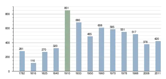 Ludność Boguszyna na przestrzeni stuleci kształtowała się w następujący sposób[12]: