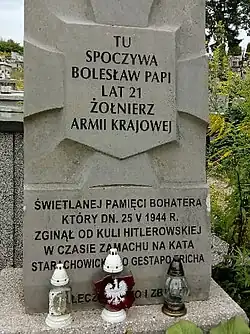 Był członkiem ZWZ (od 1940 roku) i potem Armii Krajowej (pseudonim „Czerw”). Zginął podczas akcji AK wykonania wyroku na szefie radomskiego Gestapo, Eriku Schitzu (Schützu)[1]. Pochowano go w Starachowicach.
