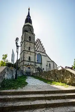 W 1392 Bolesławiec, należący wtedy do księstwa jaworsko-świdnickiego, dostał się pod panowanie czeskie, podobnie jak całe księstwo. W XIV w. z podatków nałożonych na ludność żydowską mieszkańcy Bolesławca sfinansowali budowę murów miejskich pomiędzy Górną Bramą a Bramą Mikołajską. 18 czerwca 1429 roku miasto padło ofiarą niszczycielskiego najazdów husytów, podczas którego wymordowano znaczną liczbę mieszkańców oraz spalono cały Bolesławiec. Miasto zostało zdobyte w wyniku zdrady jednego z mieszczan, który podłożył ogień pod Górną Bramą, znajdującą się w pobliżu obecnego Okrąglaka przy placu Piłsudskiego. Bolesławiec czekała po tych wydarzeniach wieloletnia odbudowa. W 1454 roku Żydzi zostali wypędzeni z miasta[22]. Pod koniec XV wieku miała miejsce rozbudowa kościoła Mariackiego, co zaowocowało rozbiórką kościoła św. Doroty. Część tej świątyni włączono do poszerzającego się kościoła. Pamiątki po tej przebudowie zachowały się do dziś w postaci inskrypcji, umieszczonych w murach bazyliki. W 1524 roku do Bolesławca przybył Jakub Süssenbach, który wygłosił w Kościele Mariackim poruszające kazanie. Kazanie spowodowało, że znaczna część mieszczan przeszła na stronę protestantów. Z czasem został zlikwidowany klasztor dominikanów, a Kościół Mariacki zamieniono w świątynię luterańską, który to stan rzeczy odmienił się dopiero w 1629 roku, kiedy kościół wrócił w ręce katolików. W kościele tym znajdowała się pierwsza znana bolesławiecka biblioteka. Była to tzw. biblioteka łańcuchowa, licząca ok. 150 woluminów.