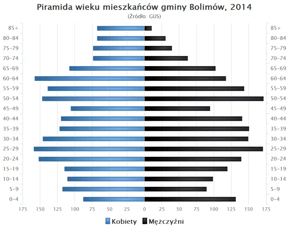 - Piramida wieku mieszkańców gminy Bolimów w 2014 roku[1].