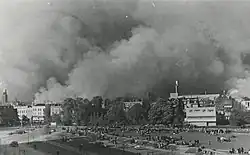 ![]() Kościół św. Wawrzyńca wśród ruin po zbombardowaniu Rotterdamu przez Luftwaffe w 1940 (Agfacolor) | |||