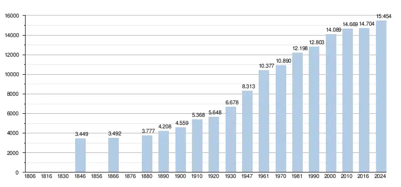 - Źródła: NIS, od 1806 do 1981= według spisu; od 1990 liczba ludności w dniu 1 stycznia